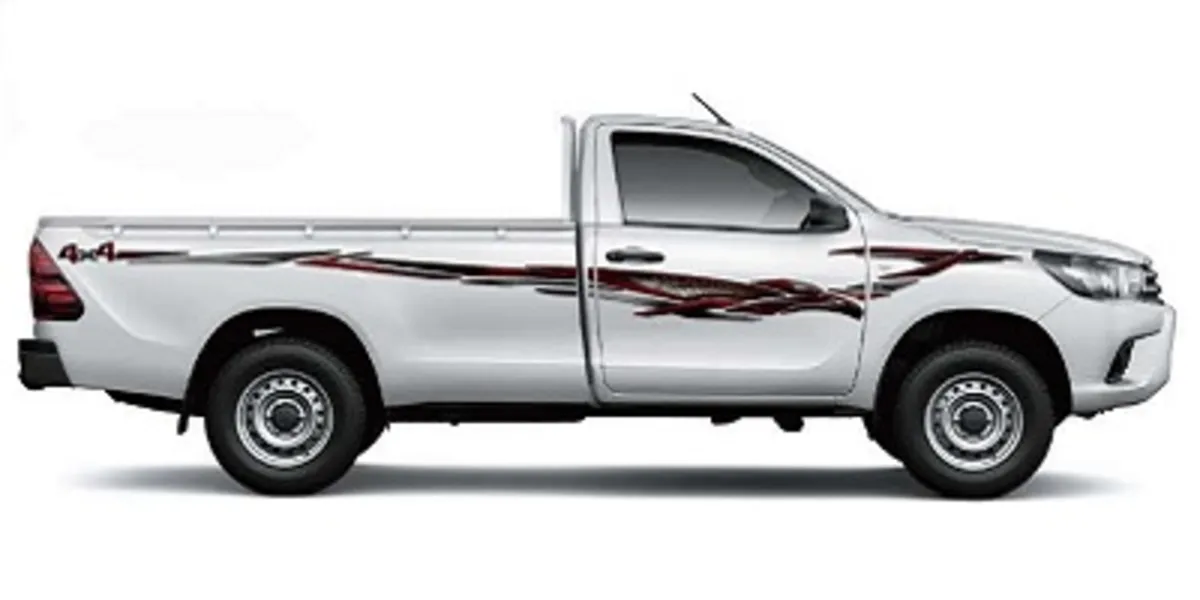 مشخصاتمشخصات عمومیکشور سازندهچیننوع برچسببدون نوشته هایلوکس تک کابین با نوشته 4x4وضعیت برچسبپهن پایین دستگیرهرنگقرمز نقره ای